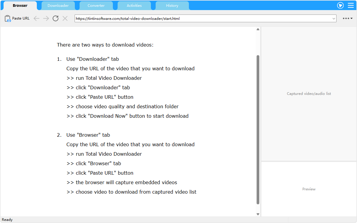 ©2026 Tintin Software Our software is for downloading videos that are copyright-free, or for fair-use purposes. We do not condone downloading copyrighted material unless you (a) are the content owner, (b) have obtained consent from the content owner, or (c) plan to use the materials for fair use only. For more information, please read Terms of Use.