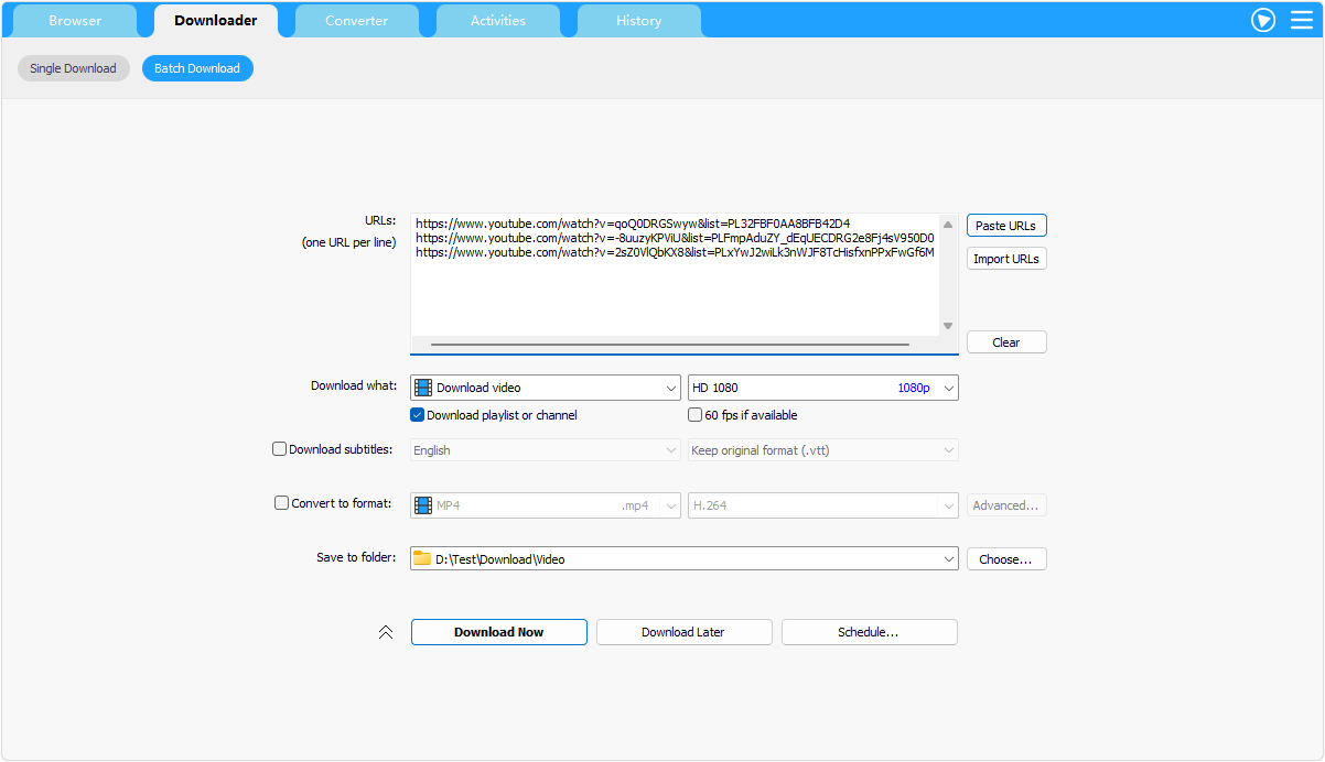 Built-in browser can capture videos/audios embedded in web pages: