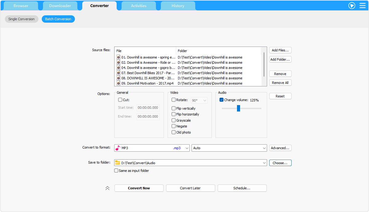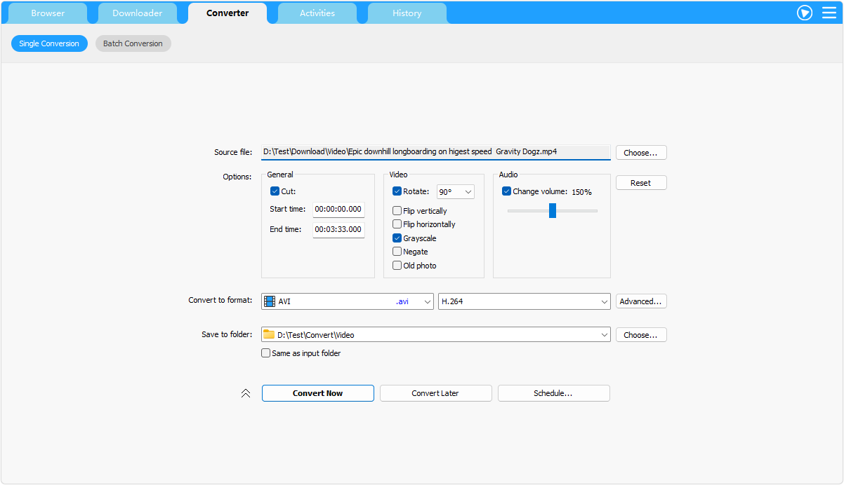 Add a task to convert a local video/audio file between different formats: