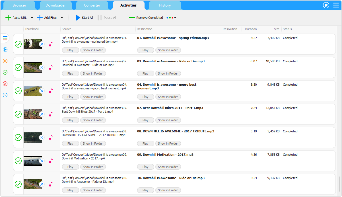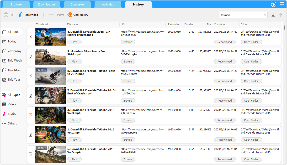 Download history list: